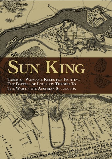 Sun King is a historical miniatures game that can be played with either 25mm or 15mm figures. Each figure represents around 33 men or 1-4 artillery pieces. The measurements for 25mm play are in inches, while centimeters are used for 15mm play. The game operates on a turn-based system, with each turn representing approximately 20-30 minutes. Players have the option to "halve" the scale, doubling unit sizes and distance measurements except for the base size.