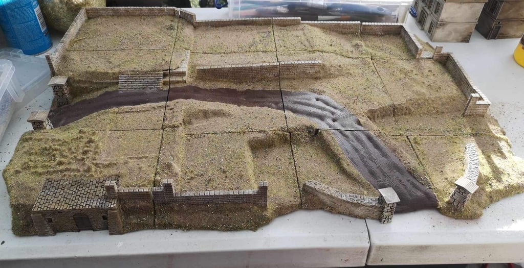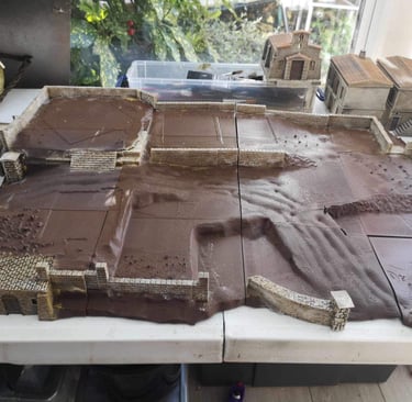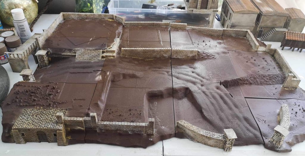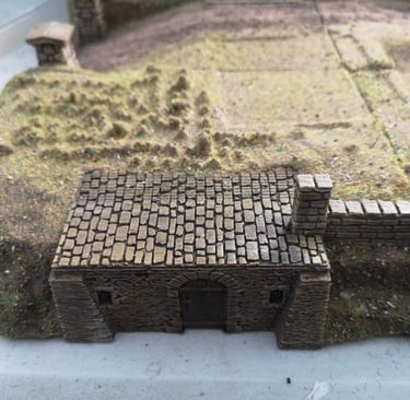 In Photo 3, I continued to build upon the realism by dry brushing with Vallejo 837 Pale Sand, enhancing the texture and highlighting the finer details of the structures.