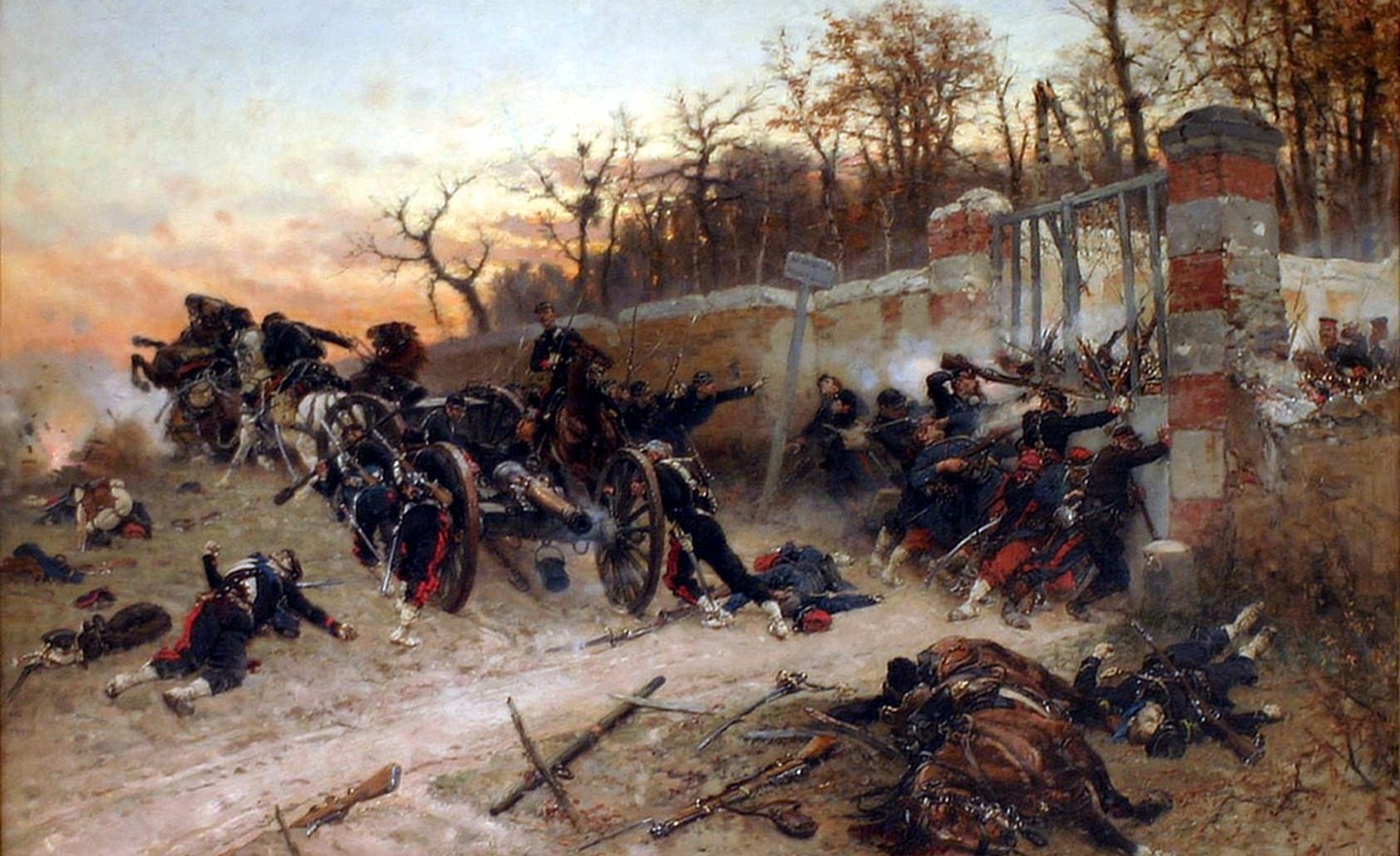During the sortie, the batteries of Commander Miribel, particularly the 4th battery of Captain Nismes, who was positioned close to the gate of Longboyau, were surprised by Prussian elements. The incident, known as Defense of the gate of Longboyau, consisted of the French and Prussians fighting at close range through the bars of the gate. During the fighting, the French lost the commander of the support company, 10 cannoniers, and 15 horses.