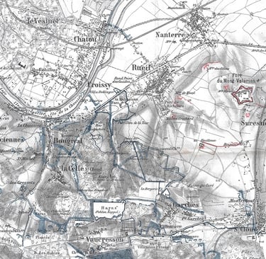 A detail from The Siege of Paris map in my collection, showing the main area of fighting during the sortie.